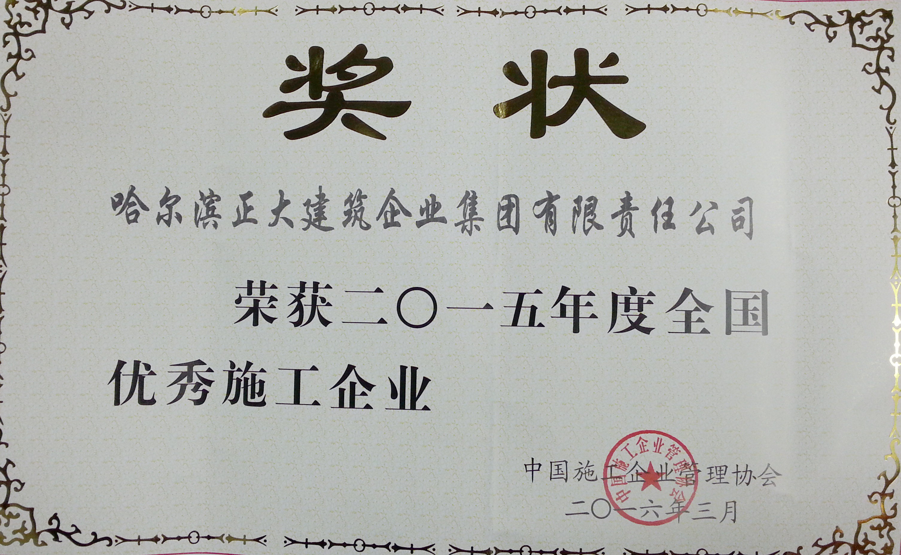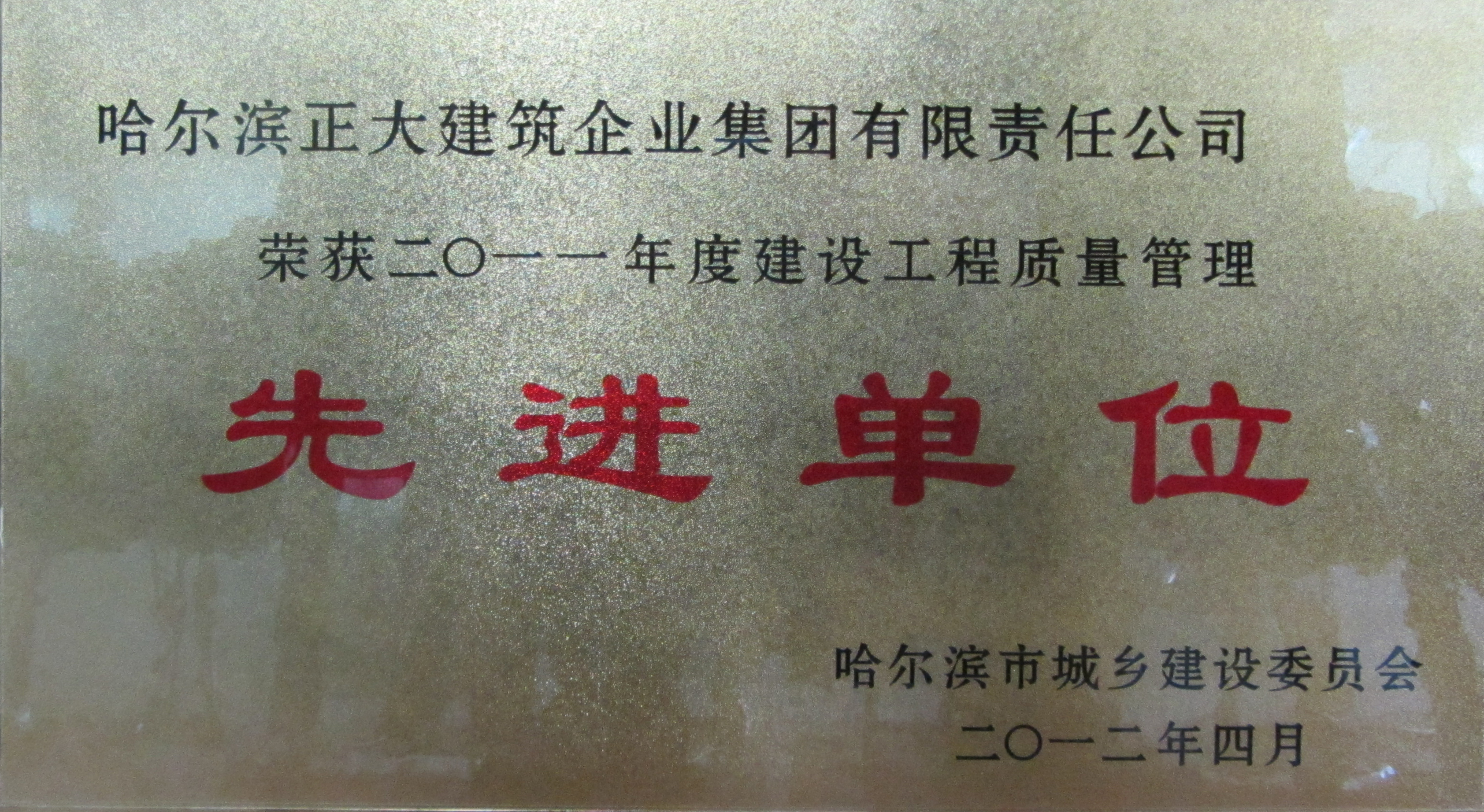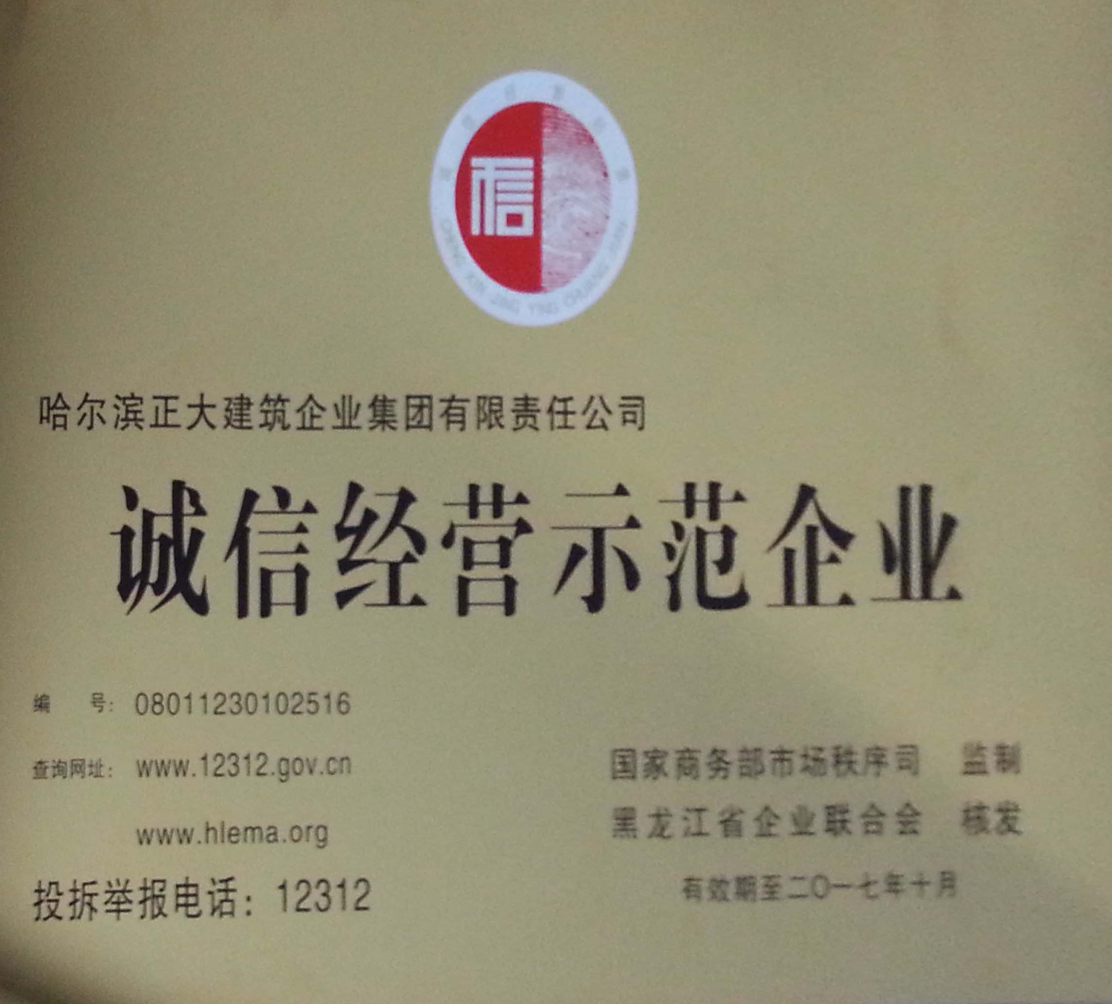 公司成立至今,先后被評為全國優(yōu)秀施工企業(yè)、全國用戶滿意施工企業(yè),全國首批建筑業(yè)誠信施工企業(yè),全國“安康杯”競賽優(yōu)勝企業(yè),全國工程建設(shè)質(zhì)量管理優(yōu)秀企業(yè)、中國建設(shè)系統(tǒng)企業(yè)信用信譽(yù)AAA級單位,并多次榮獲省、市“先進(jìn)單位”、“優(yōu)秀單位”、“重合同守信用單位”、“黑龍江省優(yōu)秀施工企業(yè)”、“黑龍江省用戶滿意施工企業(yè)”等光榮稱號。并連續(xù)獲得哈爾濱市質(zhì)量管理先進(jìn)單位、黑龍江省質(zhì)量管理先進(jìn)企業(yè)、黑龍江省質(zhì)量管理獎、黑龍江省“安康杯”優(yōu)勝企業(yè)等榮譽(yù)。并在建筑施工現(xiàn)場環(huán)保管理上創(chuàng)造了一項“中國企業(yè)新記錄”。